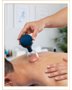 Cupping therapy involves placing sterile cups on specific areas of your body to create a vacuum. The suction lifts the skin and underlying tissues, drawing blood flow to the surface and clearing out toxins, inflammation, and stagnation.